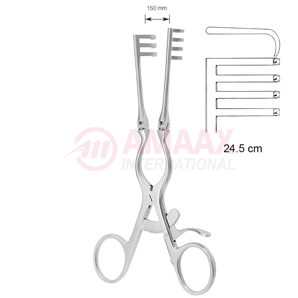 Adson Self Retaining Retractor 24.5cm Blunt 3 X 4 Prong