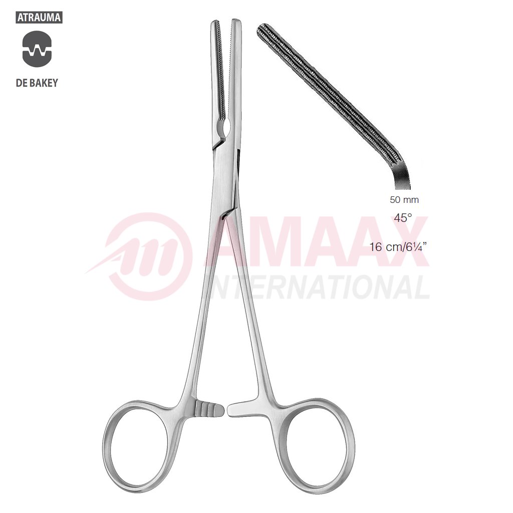 DARDIK Atraumatic Multi-Purpose Vascular Clamp 16cm (6 1/4″), 45 Degree Angled, Jaw Length 50,0mm, 2×3 Teeth