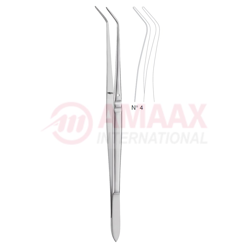 Flagg Dental Tweezer No. 4, 16cm (6 1/4″), Angled, Narrow, Smooth Handle With Recess