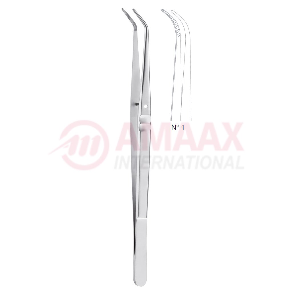 London-College Dental Tweezer No. 1, 15cm (6″), Curved, Smooth Handle With Recess