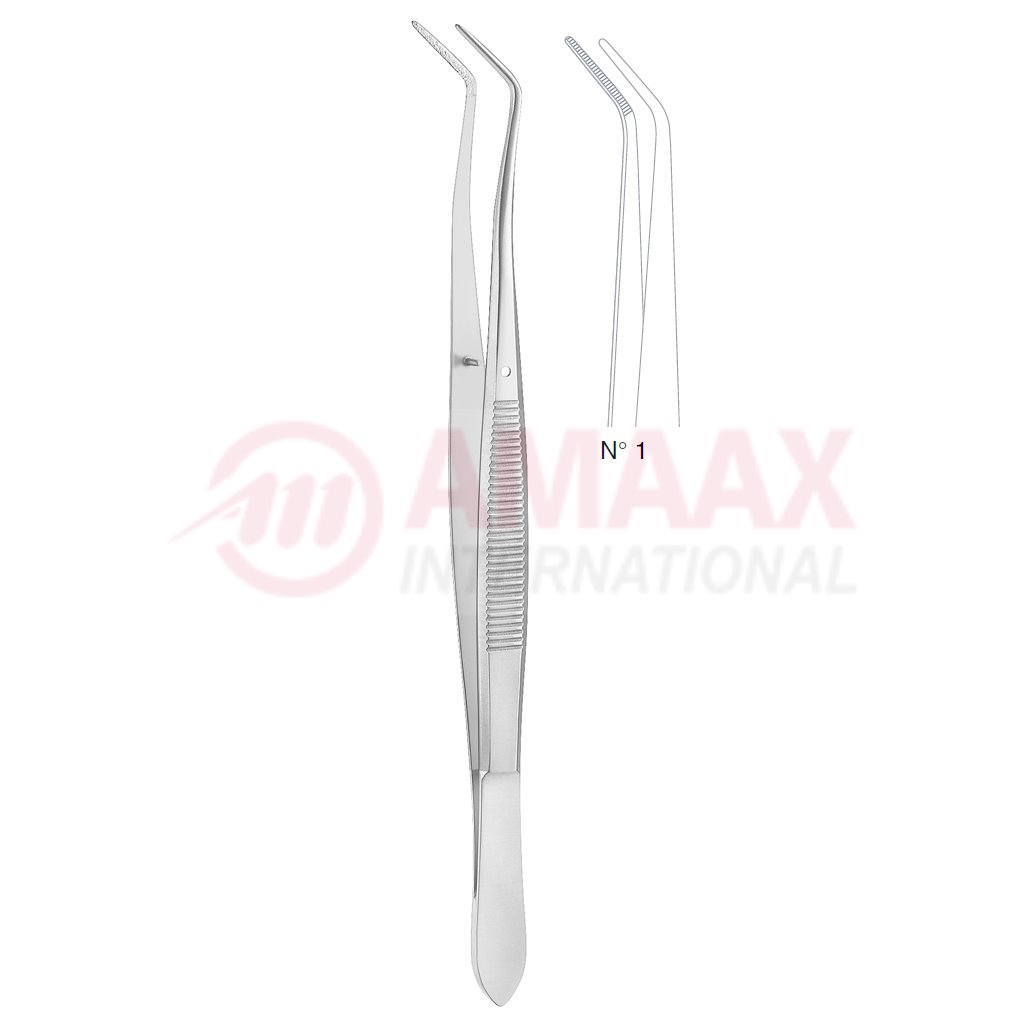 Meriam Dental Tweezer No. 1, 16cm (6 1/4″), Angled, Diamond Coated Jaws