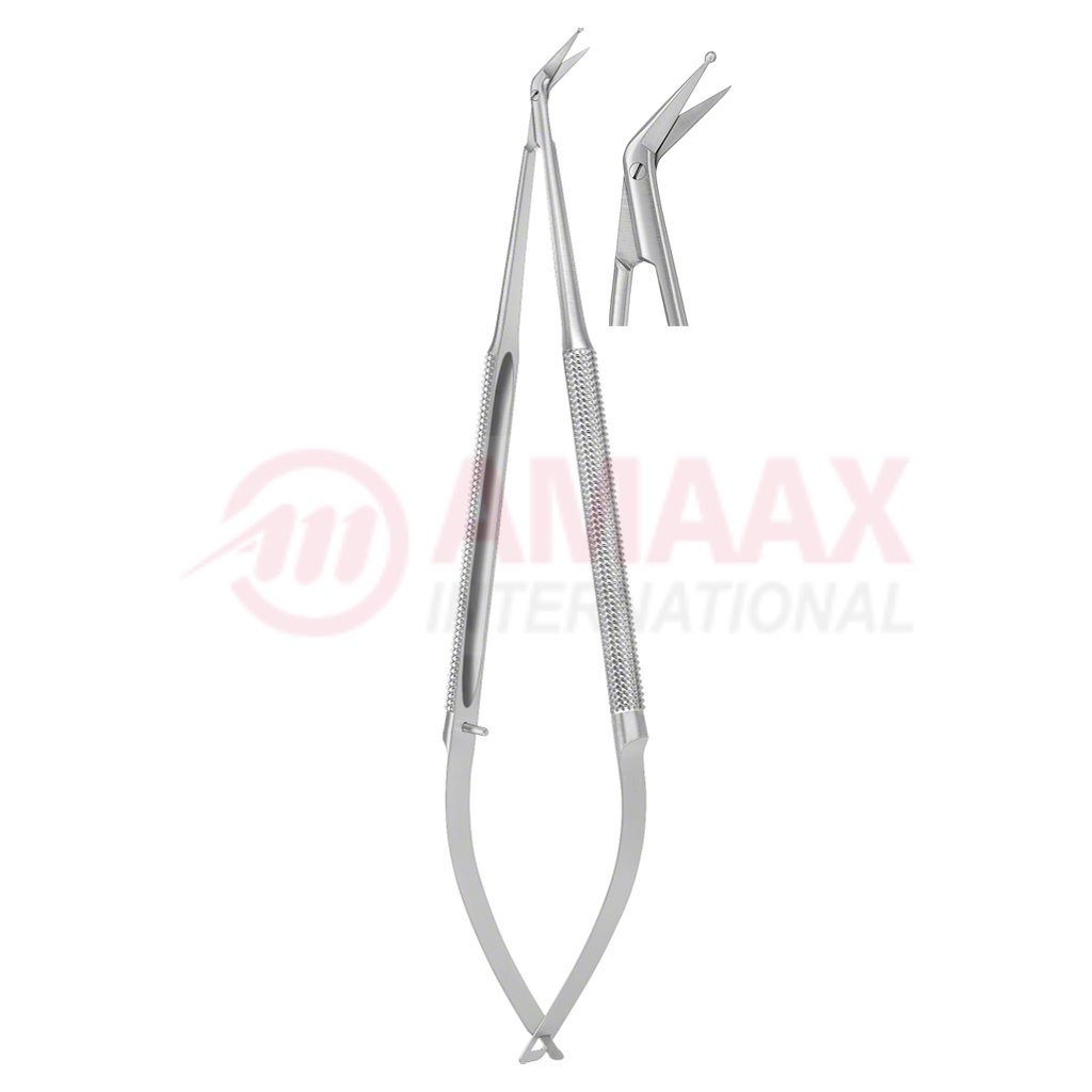 Micro Scissors Round Handle 165mm 10mm 45 Degree 1 Probe-Pointed Blade